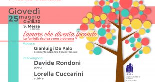 L’amore che diventa fecondo. La famiglia risorsa e non problema Roma 25 maggio 2017, ore 18,30, Chiesa delle SS. Stimmate di San Francesco ultimo incontro, dopo quelli del 20 ottobre, del 22 dicembre e del 16 marzo introduce e modera Gigi De Palo intervengono Davide Rondoni, Lorella Cuccarini conclude don …