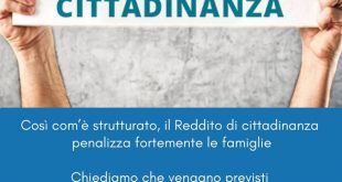“Il Forum Famiglie chiede che il Reddito di cittadinanza preveda almeno 250 euro al mese per ogni figlio minorenne a carico di una famiglia bisognosa, anziché i 100 euro mensili attuali: è la metà di quanto viene valutato un single, ma sarebbe quantomeno un segnale. Inoltre, auspichiamo che venga rimosso il limite per …