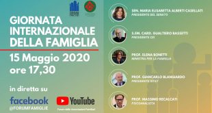 Venerdì 15 Maggio, in occasione della Giornata Internazionale della Famiglia, il Forum delle associazioni familiari terrà la propria Assemblea Generale. Quest’anno con una modalità nuova, in diretta sulla propria pagina Facebook e sul proprio canale YouTube Alle ore 17:30 il Presidente Nazionale, Gigi De Palo, darà inizio ai lavori Proseguiranno …