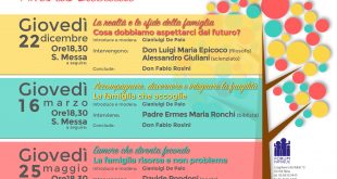 L’amore che diventa fecondo. La famiglia risorsa e non problema Roma 25 maggio 2017, ore 18,30, Chiesa delle SS. Stimmate di San Francesco ultimo incontro, dopo quelli del 20 ottobre, del 22 dicembre e del 16 marzo introduce e modera Gigi De Palo intervengono Davide Rondoni, Lorella Cuccarini conclude don …